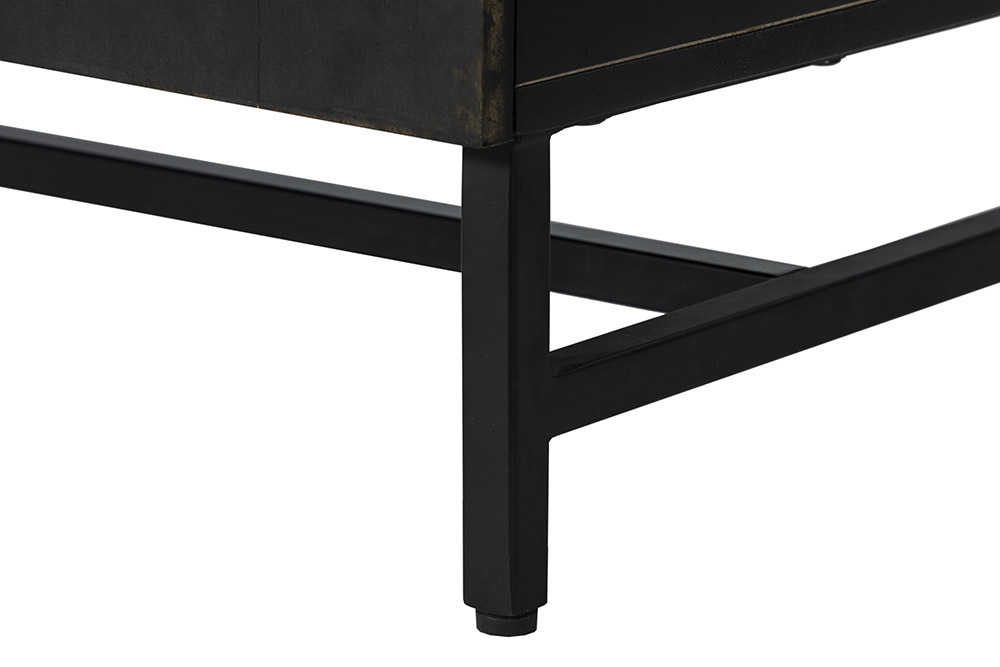 Az OXID sorozat hosszú, fából készült komódja a robusztus anyagokat kivételes dizájnnal ötvözi, és feltűnő eleme lehet nappalijának vagy étkezőjének. Extravagáns dizájnú, tárolóhellyel rendelkező komód. A tömör mangófából készült, kiváló minőségű váz fekete lakkal van bevonva, amely feltűnő kontrasztot alkot a mangófa elülső részével, amely elegáns fekete és arany sárgaréz szegélyekkel rendelkezik. A szándékosan szabálytalan, oxidált felületkezelés egyedi karaktert kölcsönöz az árucikknek, így minden darab egyedi. A komód minden irányban eredeti, így ideális szoliter darab bármilyen térben.